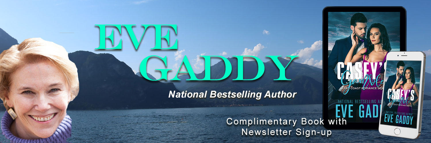 Please check your email inbox to confirm your subscriptionand receive your complimentary book. Thank you for signing up for Eve Gaddy's newsletter.